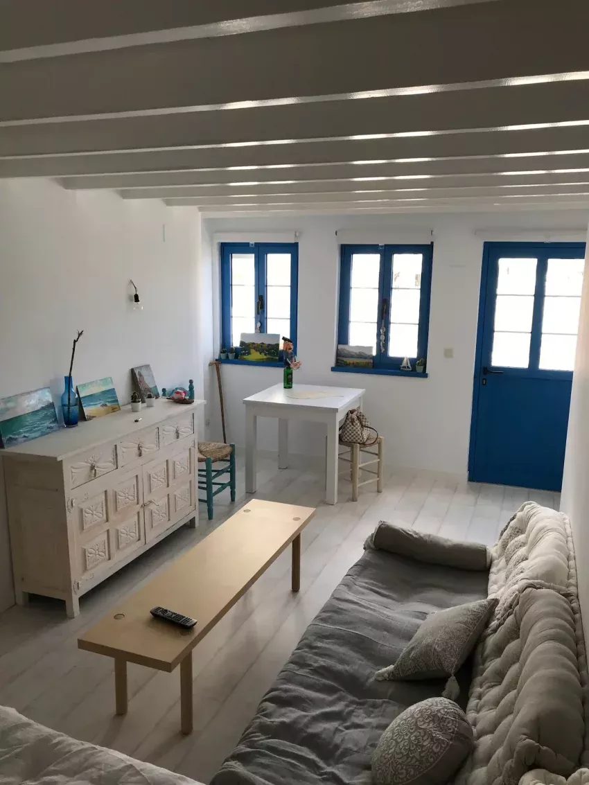 Segunda Planta: Habitación doble, salón con vistas al mar, dos camas.